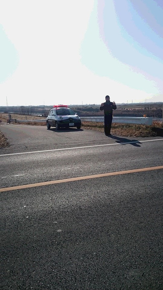 お巡りさん(パトカー)がゴマちゃんを先導