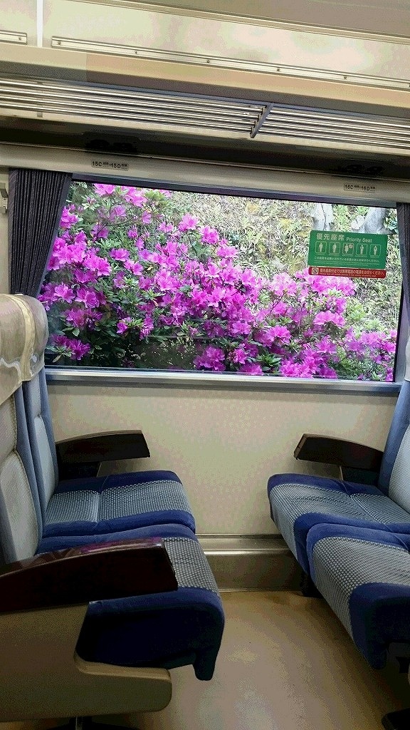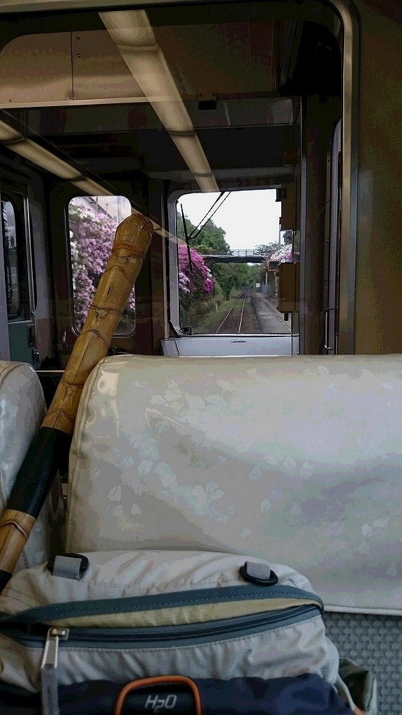 車窓より高野川駅のツツジ
