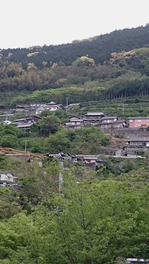 山の斜面に点在する家々